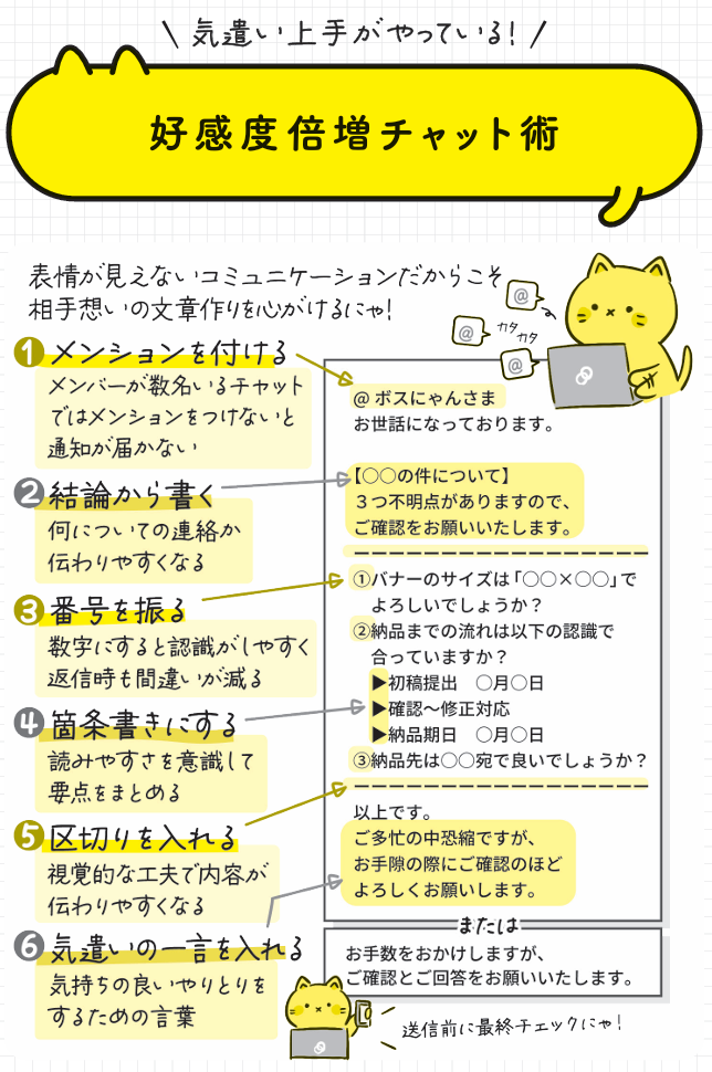 チャットとは、ただ文章を送るだけではなく、どれだけ気持ちよく仕事をスムーズに運べるかが最大の目的なのだ。